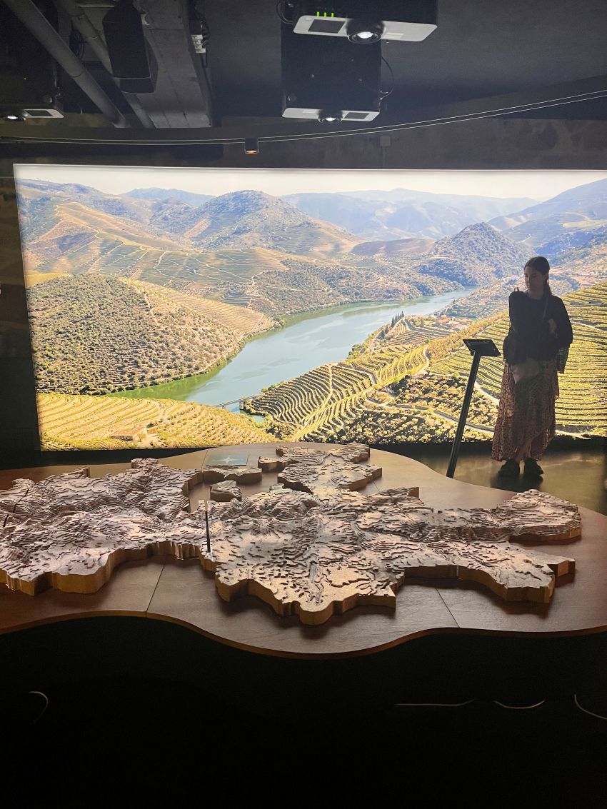 The Cálem guided tour begins by walking through a wide tunnel with stone walls that leads into an interactive museum. The exhibits are modern and easy to follow, with touchscreens, short videos, and maps that walk you through the entire history of Port wine.