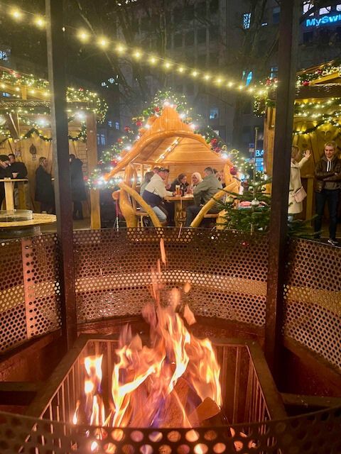 The top of the parking garage is known as City Beach the majority of the year with a beach bar and swimming pool. But in November and December, it transforms into a cozy winter Christmas market, complete with fire pits. There’s even a sit down restaurant up there!
