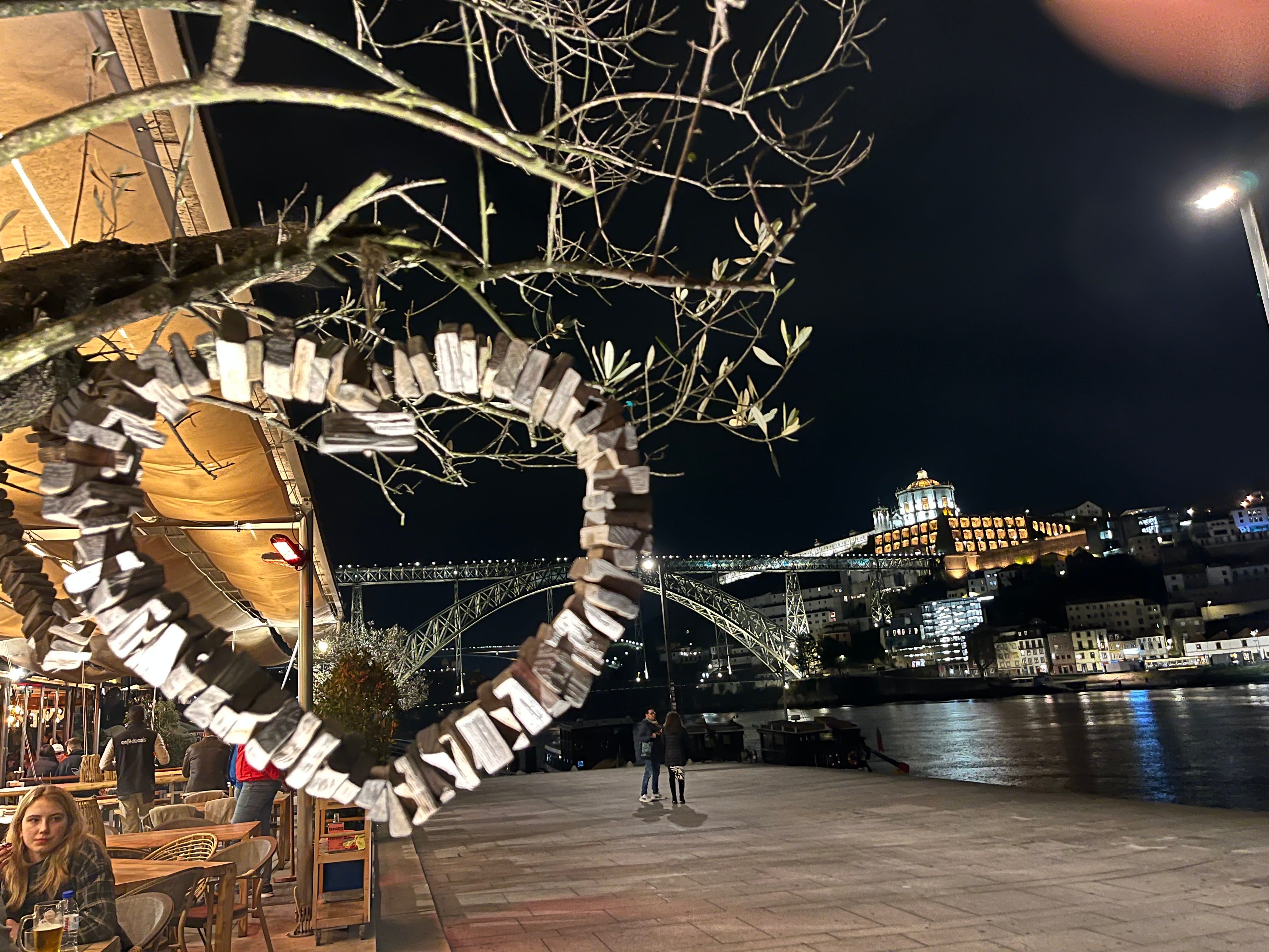 Standing in the Ribeira area of Porto looking at the Dom Luis Bridge